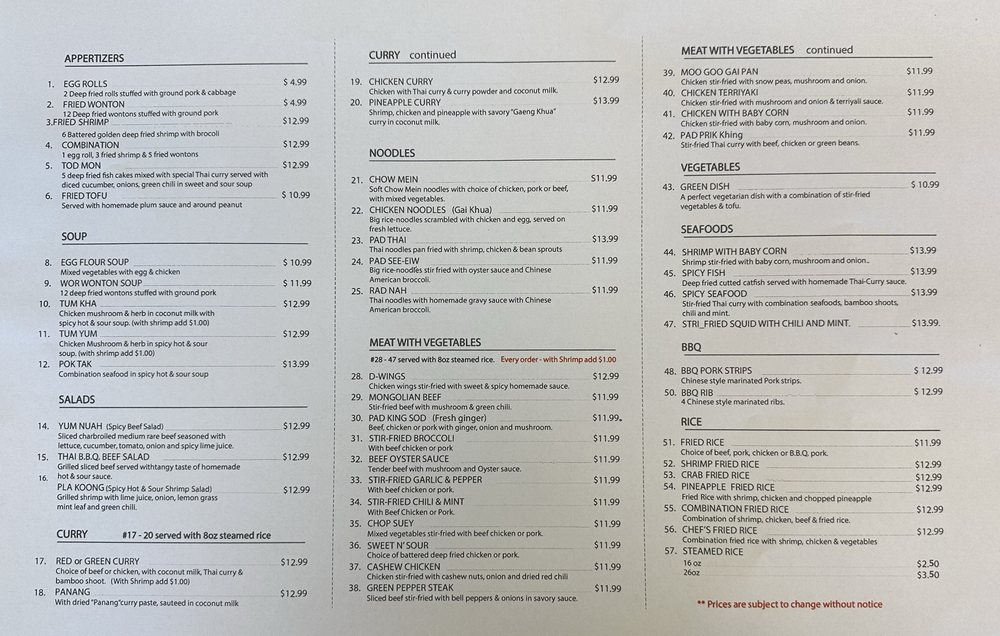With a casual atmosphere and friendly service, D Thai Chinese Restaurant has become a beloved spot for families and takeout enthusiasts alike. They offer convenient services, including delivery and catering, making it an excellent choice for lunch, dinner, or special gatherings.